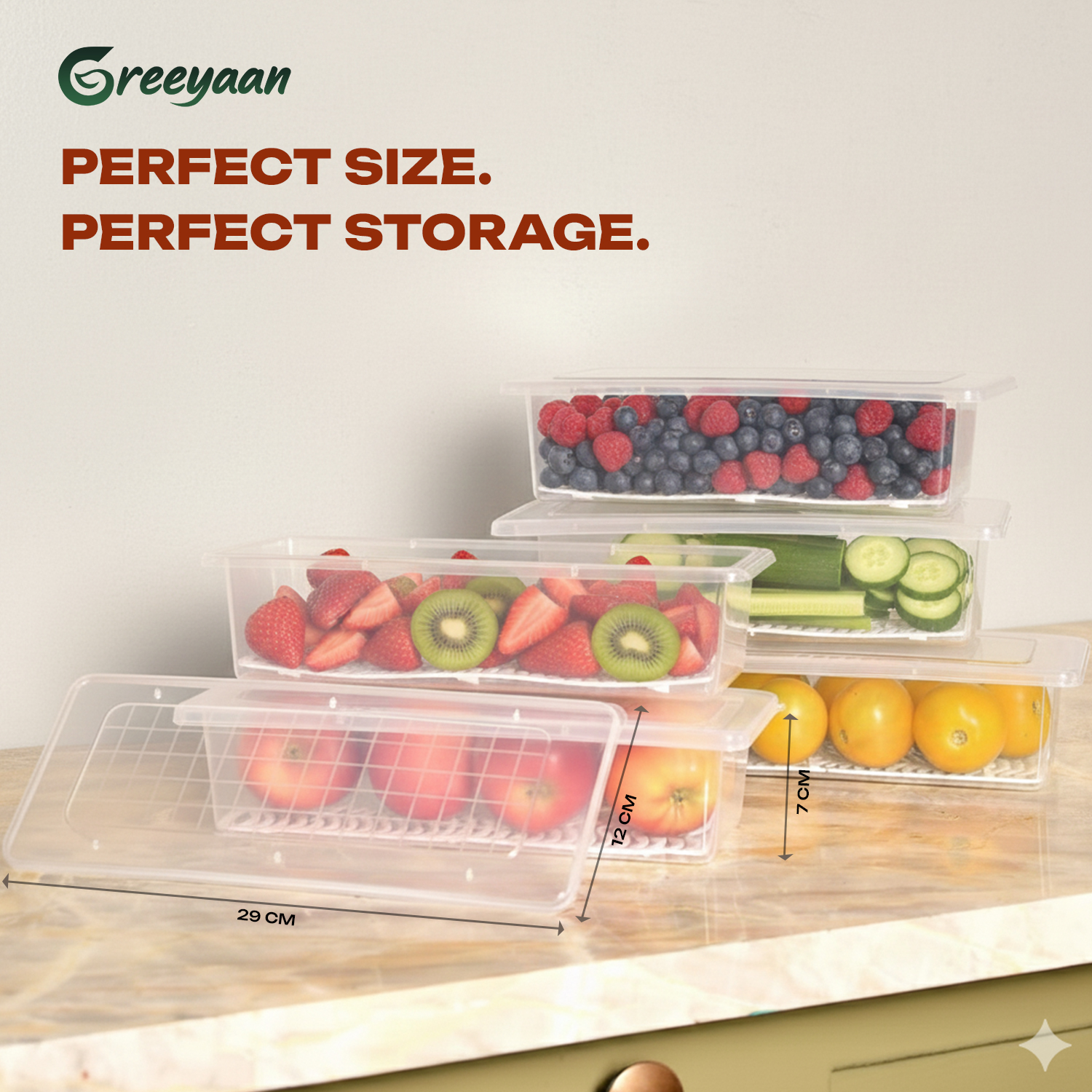 - TRANSPARENT BODY – SEE WHAT’S INSIDE INSTANTLY – The clear see-through design of these kitchen fridge storage containers lets you quickly identify stored items without opening the lid — saving time and reducing food waste. A modern, stylish and practical food storage container set for every Indian home, hostel or office kitchen.