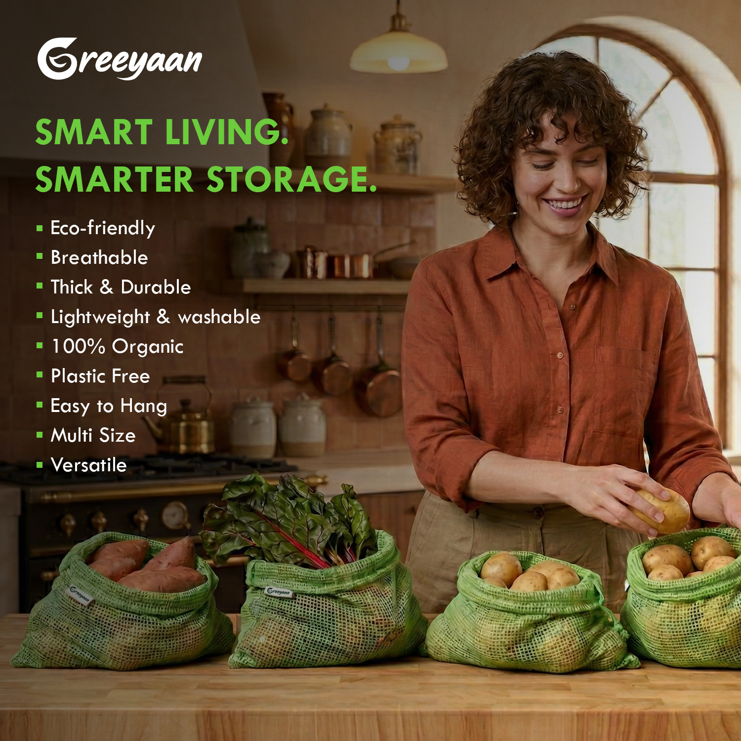- GREEYAAN 100% Cotton Vegetable Bag for Fridge – Eco-Friendly, Durable & Multi-Purpose